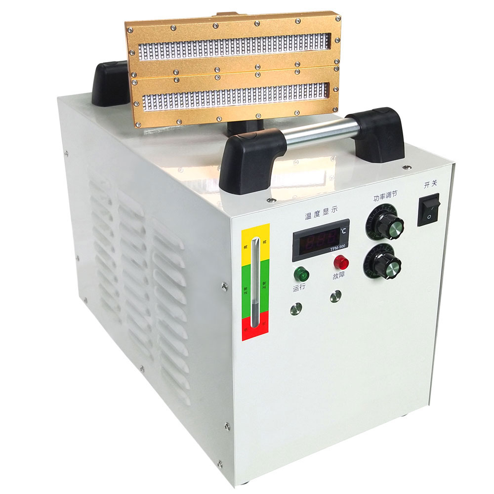 " LED" UV curing lamp is a new technology and way emitting ultraviolet ray radiation to dry UV series materials resin/ink/varnish/adhesive/coating etc with fast speed and good peformance in nowadays .